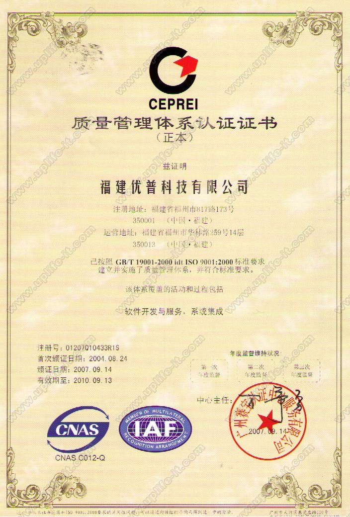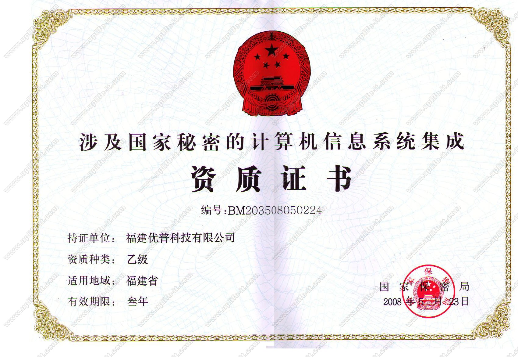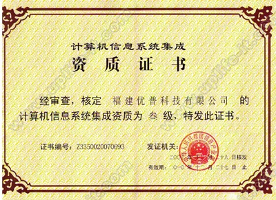 福建优普获得计算机信息系统集成三级资质